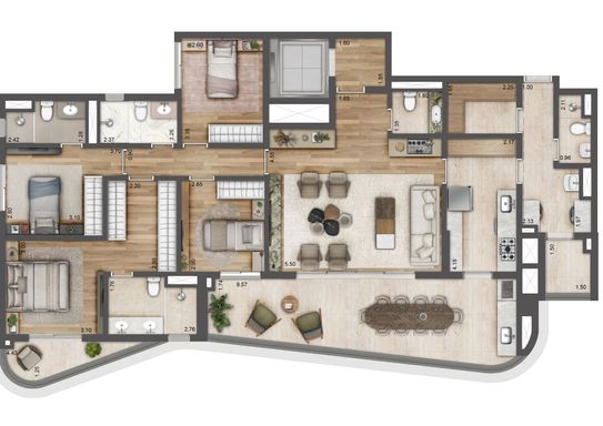 Serão 3 Torres, com metragens que vão de 130m2 a 242m², com 2, 3 ou vagas, além das coberturas duplex com até 486m² e 5 vagas.