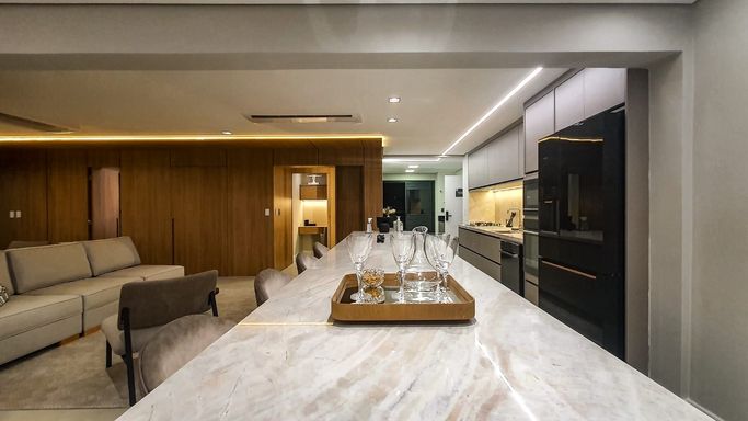 Planta Versátil - apartamento com 4 dormitórios (pode ser customizado para 3 suítes) – 177m² - terraço gourmet com churrasqueira a carvão – sala espaçosa integrada ao terraço – lavabo – lavanderia – área de serviço com ventilação – dormitório com persianas blackout e tomadas usb. 3 ou vagas de garagem.